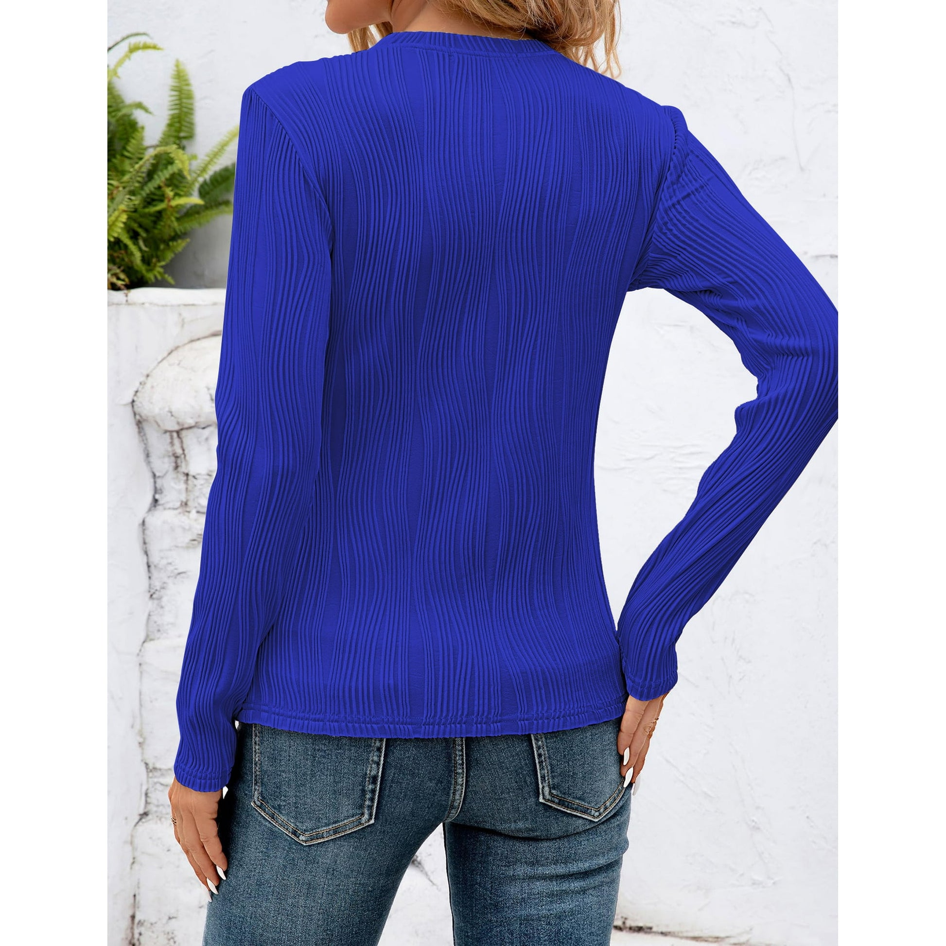 MOSHU Textured Blouses for Women Crewneck Dressy Womens Tops Casual Long Sleeve Fall Shirts